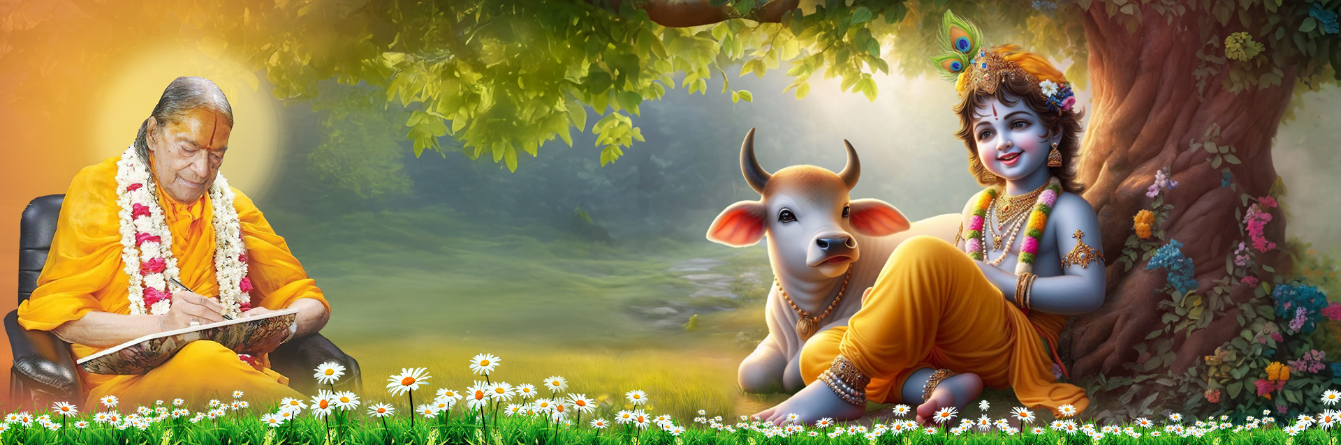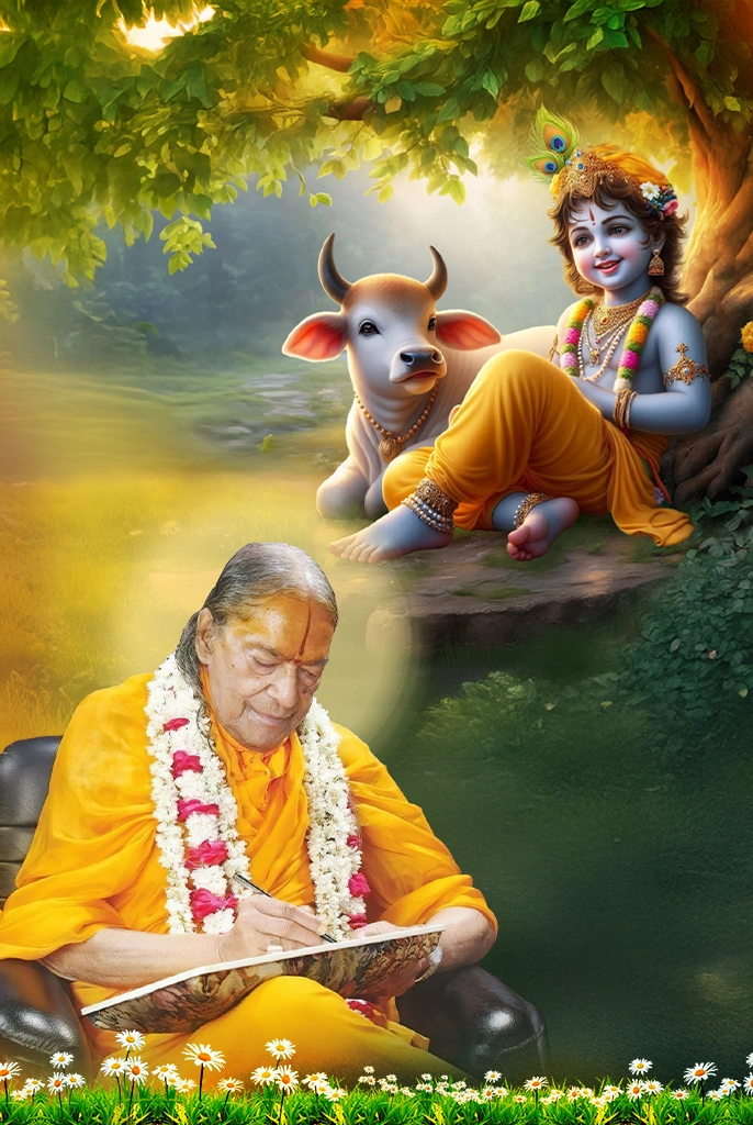 The science of Roopdhyan — as taught in the Vedas, the Upanishads, the Bhagavad Gita, the Srimad Bhagavatam, the Ramcharitmanas, the Narada Bhakti Sutra, the Padma Purana and other scriptures — is an indisputable, established principle. It proclaims that the Supreme — the most complete Purushottam manifested as Shri Ram and Shri Krishna — is both the one attribute-less, formless divine Light and, for devotees, the sweetest personal form. In essence the Supreme is nirguna and nirākāra, but for the sake of mercy and love He manifests as the highest saguna, the personal God who can be known and loved. This teaching — that the formless Absolute and the personal Lord are not two opposites but one Reality manifesting as the Beloved — runs through the Upanishads, the Gita, the Srimad Bhagavatam and the great Purāṇas. That same teaching shows how Roopdhyan (meditation on the Lord’s form) becomes the living science of devotion: the means by which the jīva turns from material bonds into the loving relationship with God. For Roopdhyan, find a beautiful picture of Shri Krishna — one that truly appeals to you. Look at that picture carefully, then close your eyes and transform that still image into