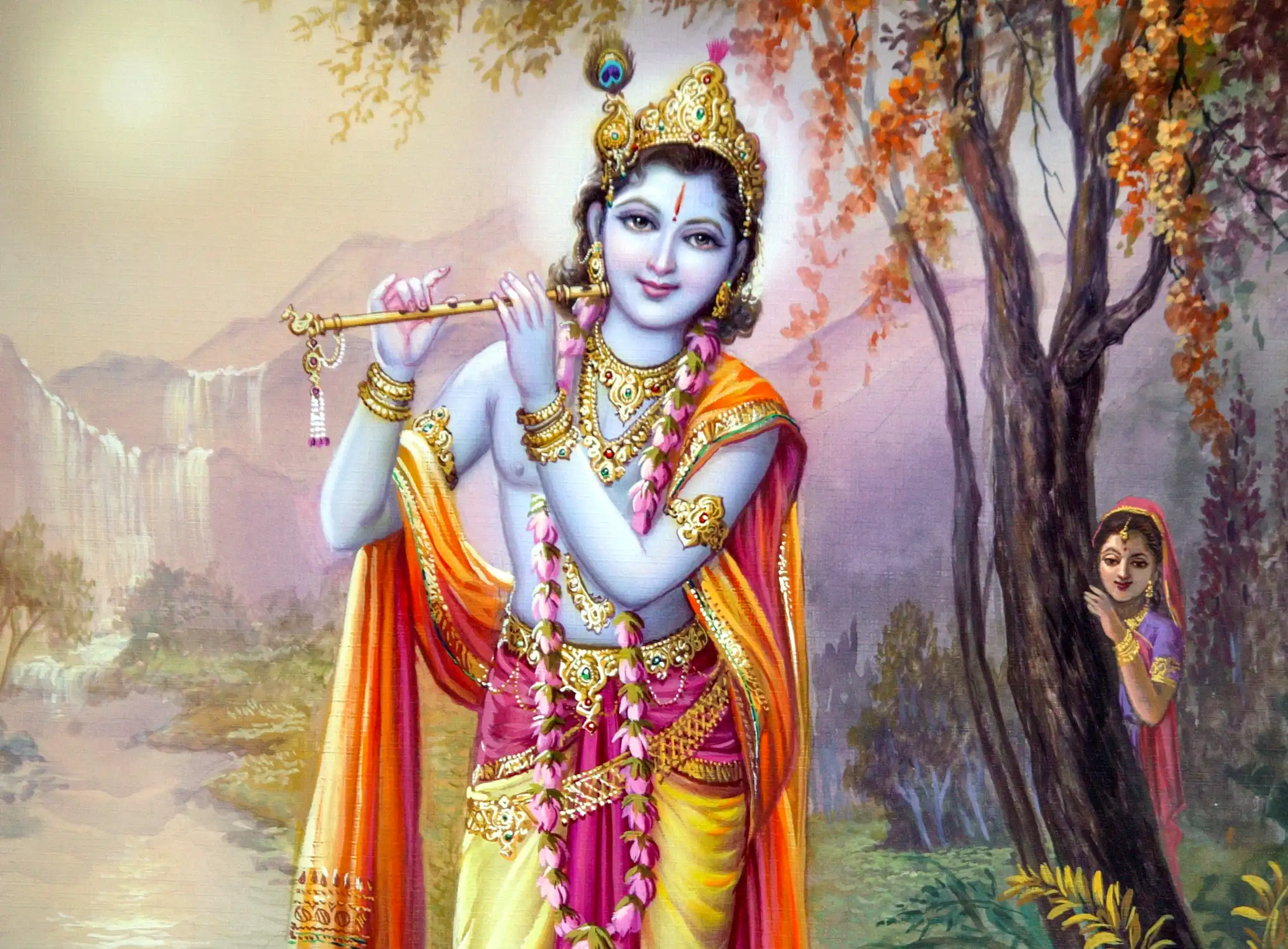 The science of Roopdhyan — as taught in the Vedas, the Upanishads, the Bhagavad Gita, the Srimad Bhagavatam, the Ramcharitmanas, the Narada Bhakti Sutra, the Padma Purana and other scriptures — is an indisputable, established principle. It proclaims that the Supreme — the most complete Purushottam manifested as Shri Ram and Shri Krishna — is both the one attribute-less, formless divine Light and, for devotees, the sweetest personal form. In essence the Supreme is nirguna and nirākāra, but for the sake of mercy and love He manifests as the highest saguna, the personal God who can be known and loved. This teaching — that the formless Absolute and the personal Lord are not two opposites but one Reality manifesting as the Beloved — runs through the Upanishads, the Gita, the Srimad Bhagavatam and the great Purāṇas. That same teaching shows how Roopdhyan (meditation on the Lord’s form) becomes the living science of devotion: the means by which the jīva turns from material bonds into the loving relationship with God. For Roopdhyan, find a beautiful picture of Shri Krishna — one that truly appeals to you. Look at that picture carefully, then close your eyes and transform that still image into